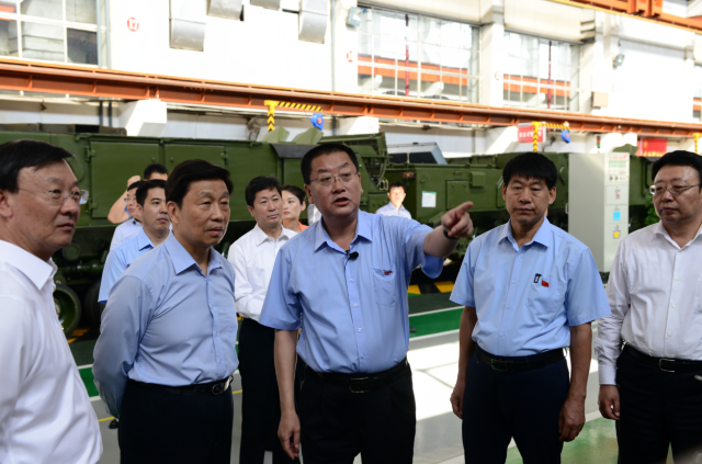 圖為李源潮(左二)在一機集團調研。 9月3日下午,中共中央政治局委員、國家副主席李源潮在內蒙古自治區(qū)黨委副書記、政法委書記李佳,包頭市委副書記、代市長趙江濤等陪同下到中國兵器工業(yè)集團內蒙古第一機械集團有限公司調研。 調研過程中,一機集團董事長、黨委書記白曉光向李源潮詳細介紹了一機集團60多年來的發(fā)展歷程、獲得的主要榮譽和軍民品結構等方面情況以及信息化管理和智能制造在總裝生產線上的應用情況。李源潮邊聽介紹邊不時地插話詢問,了解企業(yè)的人員總量、各種產品技術性能特點、生產管理水平等情況。當了解到一機集團作為我國唯一的主戰(zhàn)坦克和8×8輪式戰(zhàn)車研制生產基地,并為我國裝甲裝備的建設做出了重要貢獻后,連聲說:“你們一機了不起,很了不起。” 來到國家級技能大師工作室駐軍品總裝工作站,李源潮與技能大師盧仁峰和張學海親切握手交談。當?shù)弥髧そ潮R仁峰在克服自身殘疾的情況下不僅練就了精湛的焊接技藝,而且還為公司培養(yǎng)了許多年輕的焊接技術人才時,高興地握著盧仁峰的手說:“好啊,你很不容易啊,大家都要向你學習。”李源潮還親切地詢問了工作站每一位青年職工的學習、工作、生活情況。看到這些青年職工飽滿的精神狀態(tài)時,李源潮動情地說:“勞動者最光榮,你們是第一線的勞動者,是真正為國家做出貢獻和創(chuàng)造價值的。你們年輕人一定要把大國工匠和勞動模范的班接好,為企業(yè)、為國家多做貢獻?!?/p> “你們公司現(xiàn)在有多少名團員青年,平時團組織都有什么活動?”在五分公司503車間團支部建設園地前,李源潮仔細詢問了解一機集團的共青團工作開展情況。他還非常認真地從公司團干部手機中仔細了解了一機集團團委落實團中央“1+100”團干部聯(lián)系青年制度的開展情況,勉勵團干部改進作風,更好地直接聯(lián)系服務青年。 在總裝生產線,李源潮興致勃勃地登上公司最新研制生產的99A坦克,向白曉光詳細詢問了坦克自動裝彈系統(tǒng)、防護性能、火炮威力等各項戰(zhàn)技指標情況。 在五分公司觀禮臺前,三輛不同型號鐵甲戰(zhàn)車轟鳴著駛過,李源潮高興地不停鼓掌。隨后,李源潮還認真了解了現(xiàn)場擺放的各種型號的裝甲戰(zhàn)車的有關情況。 調研結束時,李源潮握著白曉光的手說,“謝謝一機集團的干部職工為我國國防事業(yè)做出的重要貢獻,請代我向全體干部職工問好”。(朱小萌)