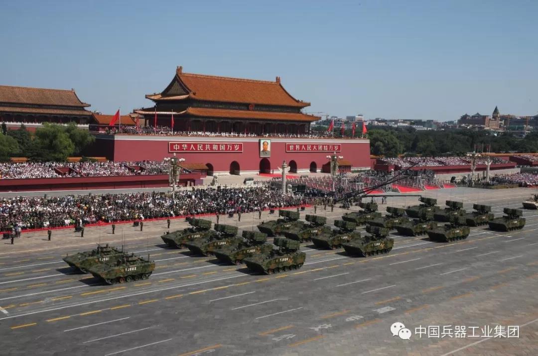 2015年9月3日,紀(jì)念抗戰(zhàn)勝利70周年閱兵在天安門廣場(chǎng)舉行,接受檢閱的27個(gè)裝備方隊(duì)中,兵器工業(yè)集團(tuán)研制生產(chǎn)的裝備占到13型,99A主戰(zhàn)坦克、紅箭10導(dǎo)彈發(fā)射車、11式輪式裝甲突擊車和35毫米自行高炮系統(tǒng)等裝備首次亮相。