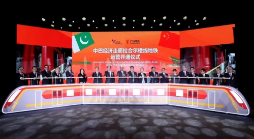 10月25日,巴基斯坦拉合爾軌道交通橙線項目在中國北京和巴基斯坦旁遮普省首府拉合爾市,以視頻連線方式隆重舉行運營開通儀式,這標志著巴基斯坦駛?cè)氲罔F時代。國家發(fā)展和改革委員會秘書長趙辰昕,中國兵器工業(yè)集團有限公司董事長焦開河、總經(jīng)理劉大山、副總經(jīng)理植玉林,巴基斯坦駐華大使莫恩·烏·哈克、巴基斯坦旁遮普省首席部長薩爾達爾·烏斯曼·布茲達爾、中國駐巴基斯坦拉合爾總領(lǐng)事龍定斌等出席開通儀式。