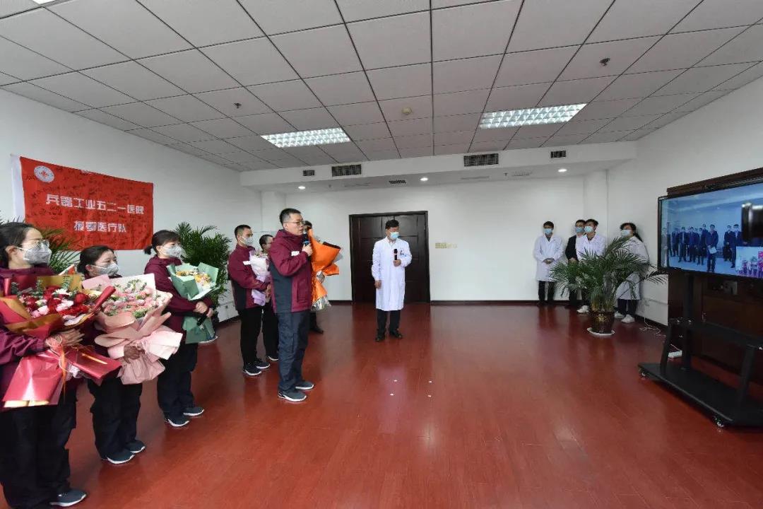 焦開河指出,面對突如其來的新冠肺炎疫情的嚴峻考驗,521醫(yī)院7名援鄂醫(yī)療隊隊員堅決響應(yīng)習(xí)近平總書記和黨中央號召,肩負集團公司黨組和全集團23萬干部職工的重托,聞令而動、挺身而出,奔赴抗擊疫情第一線。援鄂期間,杭博、郭苓、緱豪兵、楊嬌4位同志,充分發(fā)揮了共產(chǎn)黨員的先鋒模范作用,呂戈、侯永生、曹利娜3位同志火線入黨,不辱使命、不負重托,出色完成了任務(wù)。7位同志的辛勤付出,充分體現(xiàn)了“把一切獻給黨”的人民兵工精神,體現(xiàn)了大愛無疆的醫(yī)者仁心,體現(xiàn)了集團公司大國頂梁柱的責(zé)任擔(dān)當(dāng),為黨旗爭了光,為集團公司添了彩。全集團廣大干部職工要學(xué)習(xí)他們的先進事跡,為奪取疫情防控和實現(xiàn)全年目標(biāo)任務(wù)的“雙勝利”不懈奮斗!