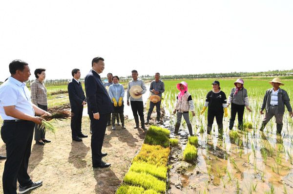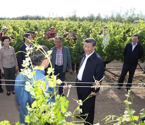 習(xí)近平總書記9日在銀川考察調(diào)研。他先后來到賀蘭縣稻漁空間鄉(xiāng)村生態(tài)觀光園、賀蘭山東麓葡萄種植園,了解當(dāng)?shù)匕l(fā)展特色農(nóng)業(yè)產(chǎn)業(yè)、加強(qiáng)賀蘭山生態(tài)保護(hù)等情況。 (攝影:新華社記者 鞠鵬、謝環(huán)馳、王曄、燕雁) |