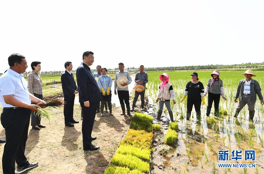 6月8日至10日,中共中央總書記、國家主席、中央軍委主席習(xí)近平在寧夏考察。這是6月9日下午,習(xí)近平在銀川市賀蘭縣稻漁空間鄉(xiāng)村生態(tài)觀光園,了解寧夏現(xiàn)代農(nóng)業(yè)發(fā)展和特色農(nóng)產(chǎn)品情況。 新華社記者 鞠鵬 攝