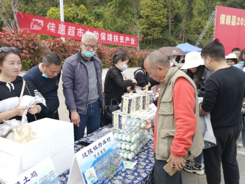 第一步便是養(yǎng)殖江漢綠殼雞,販賣綠殼土雞蛋?!傲窒伦匀环硼B(yǎng),生態(tài)自由采食,原生態(tài)富硒綠殼土雞蛋,1.5元/個(gè),走過的路過的不要錯(cuò)過啊……”這是朱利慶于“保靖縣2020年消費(fèi)扶貧愛心認(rèn)購(gòu)活動(dòng)”上的推銷廣告詞。2020年4月9日,駐村工作隊(duì)又一次成功地把村集體經(jīng)濟(jì),特色養(yǎng)殖——府庫(kù)綠殼土雞蛋推向了當(dāng)?shù)厥袌?chǎng),此次展銷會(huì)共現(xiàn)場(chǎng)銷售2720個(gè)雞蛋,村集體當(dāng)天收入4080元并與多家單位洽談了長(zhǎng)期意向銷售。工作隊(duì)又購(gòu)進(jìn)8000羽綠殼蛋雞苗,以此進(jìn)一步擴(kuò)大養(yǎng)殖規(guī)格,帶動(dòng)老百姓一起增收。