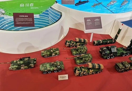 ▲我國(guó)自主研制的主戰(zhàn)坦克、輪式步兵戰(zhàn)車和遠(yuǎn)程火箭炮等陸軍主戰(zhàn)裝備