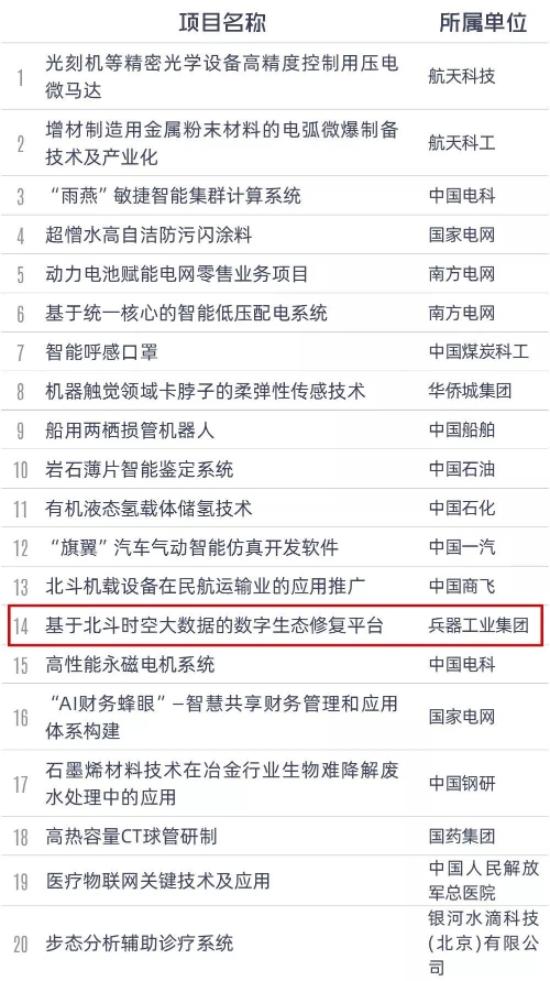 為落實(shí)黨中央、國(guó)務(wù)院關(guān)于加快實(shí)施創(chuàng)新驅(qū)動(dòng)發(fā)展戰(zhàn)略、深入推進(jìn)大眾創(chuàng)業(yè)萬(wàn)眾創(chuàng)新的決策部署,加快推動(dòng)中央企業(yè)創(chuàng)新創(chuàng)業(yè)高質(zhì)量發(fā)展,國(guó)資委于2020年9月組織開展了第三屆中央企業(yè)熠星創(chuàng)新創(chuàng)意大賽。 大賽啟動(dòng)以來(lái),各中央企業(yè)積極組織參加,社會(huì)創(chuàng)新團(tuán)體踴躍參與,共3340個(gè)項(xiàng)目、2.3萬(wàn)余人報(bào)名參賽。通過(guò)項(xiàng)目初選和復(fù)選,共有516個(gè)項(xiàng)目面向社會(huì)進(jìn)行了投資路演和對(duì)接,吸引眾多投資機(jī)構(gòu)和知名企業(yè)參與,達(dá)成一批合作意向。 經(jīng)總決賽評(píng)選,共評(píng)選出一等獎(jiǎng)20項(xiàng)、二等獎(jiǎng)30項(xiàng)、三等獎(jiǎng)50項(xiàng)、優(yōu)秀獎(jiǎng)100項(xiàng),中國(guó)兵器工業(yè)集團(tuán)有限公司4個(gè)項(xiàng)目獲獎(jiǎng)并榮獲“優(yōu)秀組織單位”。 兵器工業(yè)集團(tuán)獲獎(jiǎng)項(xiàng)目 一等獎(jiǎng)(1個(gè)) 基于北斗時(shí)空大數(shù)據(jù)的數(shù)字生態(tài)修復(fù)平臺(tái)(創(chuàng)意類) 三等獎(jiǎng)(1個(gè)) 三合一北斗智能邊海防管控終端(創(chuàng)新類) 優(yōu)秀獎(jiǎng)(2個(gè)) 基于北斗的鐵路工程測(cè)量創(chuàng)新應(yīng)用(創(chuàng)意類) 公共交通一體化智慧監(jiān)測(cè)系統(tǒng)(創(chuàng)新類) 完整獲獎(jiǎng)名單 |