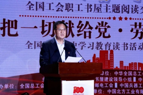 活動由全總宣教部、中國國防郵電工會、中國兵器工業(yè)集團有限公司黨群工作部、中國工人出版社共同承辦,中國北方工業(yè)有限公司協(xié)辦。來自中華全國總工會、全國工會職工書屋建設(shè)領(lǐng)導小組成員、部分全國工會職工書屋公益代言人,各全國產(chǎn)業(yè)工會、全總各部門負責同志,部分省市總工會副主席、宣教部長,兵器工業(yè)集團一線勞模工匠、職工代表等參加活動。