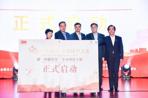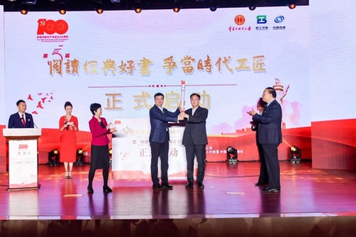 第五屆“閱讀經(jīng)典好書 爭當時代工匠”全國工會職工書屋主題閱讀交流活動正式啟動,現(xiàn)場進行火炬?zhèn)魇?/p>