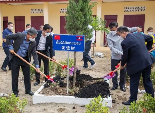 活動期間,北方國際項目部為安居村小學捐贈書畫教室課桌椅等教學用具,并組織書法和繪畫老師為小學生授課,舉辦書畫比賽,評選優(yōu)秀作品進行展覽。老撾公共工程與運輸部部長榮沙瓦從中方代表手中接過象征搬遷入住的鑰匙,并共同種下象征友誼的柏樹。