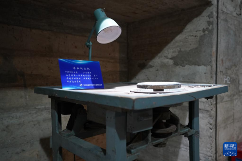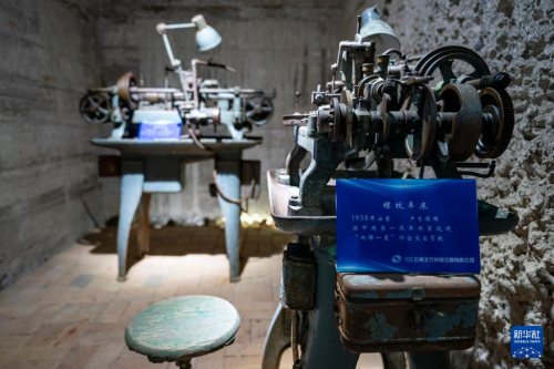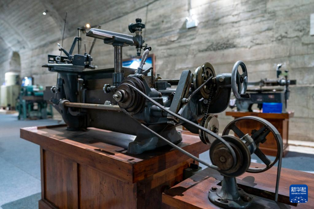 這是5月16日拍攝的中國光學歷史博物館內(nèi)收藏的螺紋車床。
