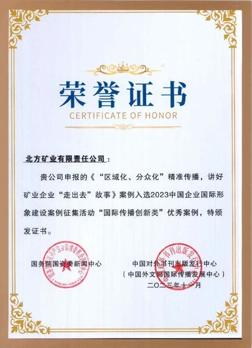論壇上,“2023中國企業(yè)國際形象建設(shè)案例征集活動”評選結(jié)果揭曉。評選活動以“挖掘典型案例、建設(shè)企業(yè)形象、講好中國故事”為宗旨,從來自中央企業(yè)、地方國企及民營企業(yè)報送的251個有效案例中遴選出“共建新絲路”“跨文化融合”“國際傳播創(chuàng)新”“筑夢人物故事”四類專項優(yōu)秀案例共40個。中國兵器工業(yè)集團北方公司北方礦業(yè)有限責(zé)任公司案例《“區(qū)域化、分眾化”精準傳播,講好礦業(yè)企業(yè)“走出去”故事》入選“國際傳播創(chuàng)新類”優(yōu)秀案例。 作為高質(zhì)量共建“一帶一路”的重要力量,北方礦業(yè)堅持以“區(qū)域化、分眾化”精準傳播方式塑造企業(yè)形象,根據(jù)項目所在國社交媒體使用情況,建立臉書、推特、領(lǐng)英傳播矩陣,使用英、法、阿多語發(fā)布,堅持屬地人講屬地事,以高品質(zhì)視頻、海報、圖文等多媒體形式講述中國企業(yè)為當(dāng)?shù)乜沙掷m(xù)發(fā)展做出的貢獻,并取得積極傳播成效。