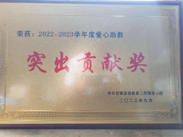 9月7日,在第39個(gè)教師節(jié)來臨之際,黑龍江甘南縣委教育工作領(lǐng)導(dǎo)小組授予中國兵器工業(yè)集團(tuán)有限公司愛心助教“突出貢獻(xiàn)獎(jiǎng)”,以表彰兵器工業(yè)集團(tuán)在教育領(lǐng)域?yàn)楦誓峡h鄉(xiāng)村振興作出的突出貢獻(xiàn)。