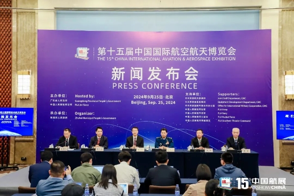 9月25日,第十五屆中國(guó)國(guó)際航空航天博覽會(huì)(以下簡(jiǎn)稱(chēng)“中國(guó)航展”)新聞發(fā)布會(huì)在北京舉行。廣東省委常委、常務(wù)副省長(zhǎng)張虎介紹本屆航展有關(guān)情況,中國(guó)空軍副司令員俞慶江介紹空軍參展亮點(diǎn)。中國(guó)航展珠海執(zhí)委會(huì)主任、珠海市委副書(shū)記、市長(zhǎng)黃志豪,國(guó)家國(guó)防科技工業(yè)局(國(guó)家航天局)新聞宣傳辦公室副主任李陽(yáng),中國(guó)民航局運(yùn)行監(jiān)控中心副主任戴軍分別答記者問(wèn)。廣東省政府新聞辦副主任鄧?guó)欀鞒职l(fā)布會(huì)。